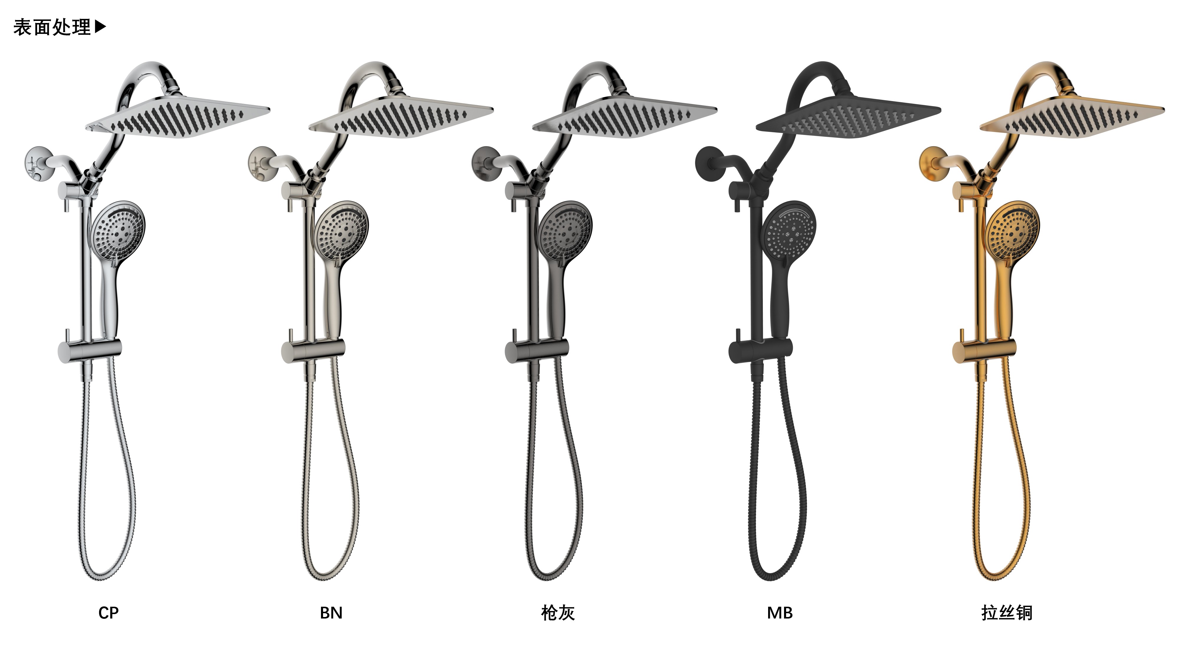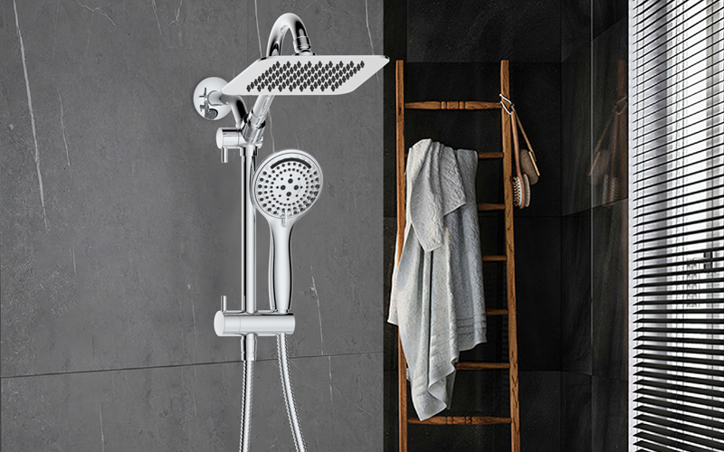 上出水彎管套裝;頂噴內(nèi)置球頭,可實(shí)現(xiàn)多角度旋轉(zhuǎn)調(diào)整;把手切換頂噴出水、花灑出水;轉(zhuǎn)動(dòng)把手調(diào)節(jié)滑座高低