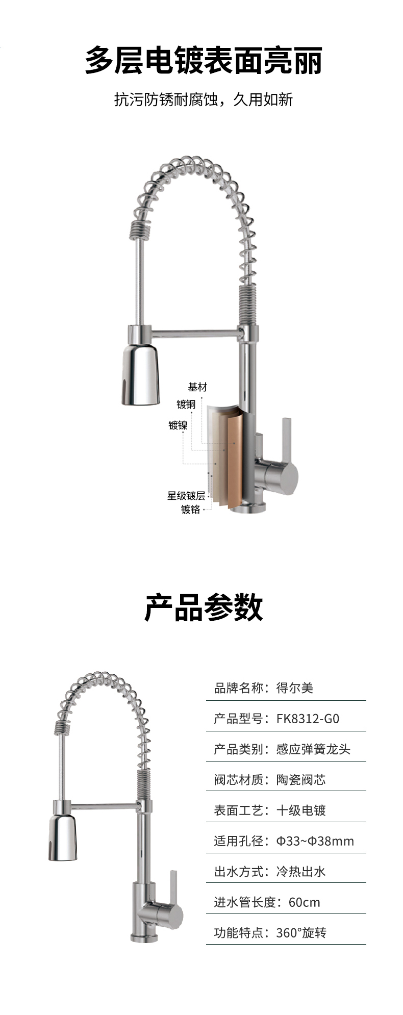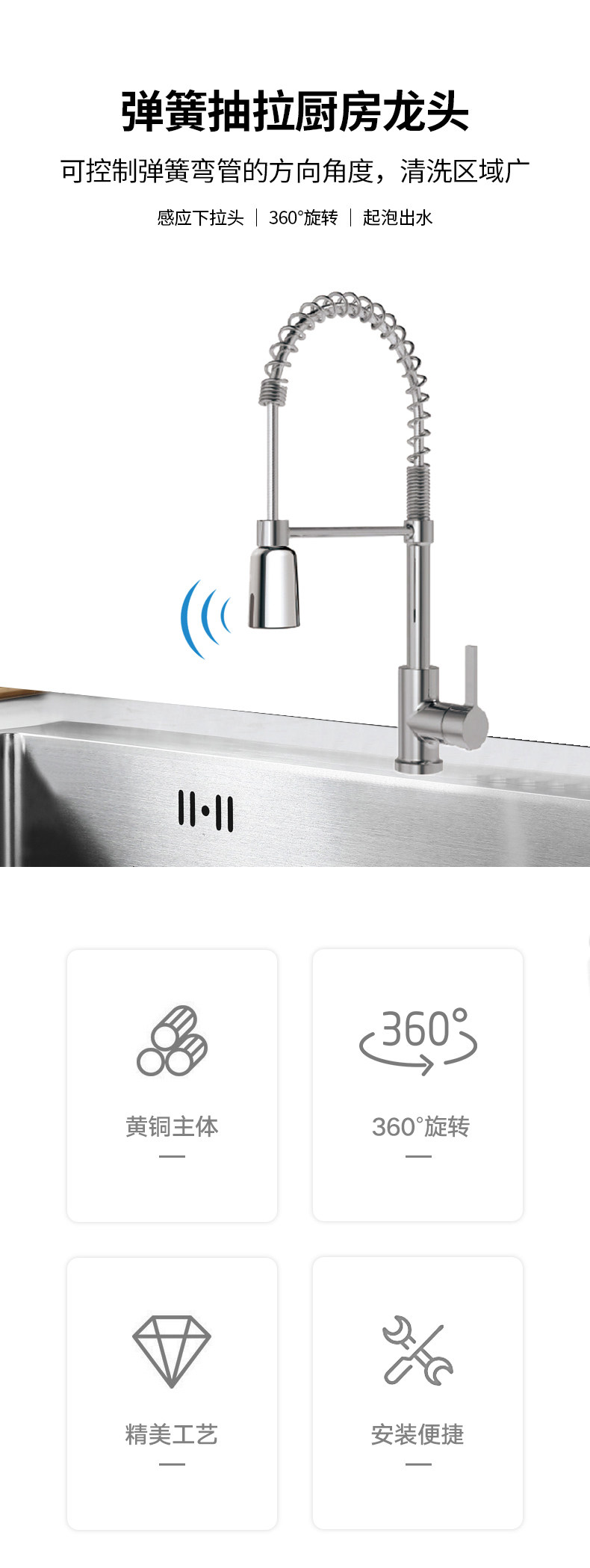 FK8312-C0 感應下拉頭廚房彈簧龍頭